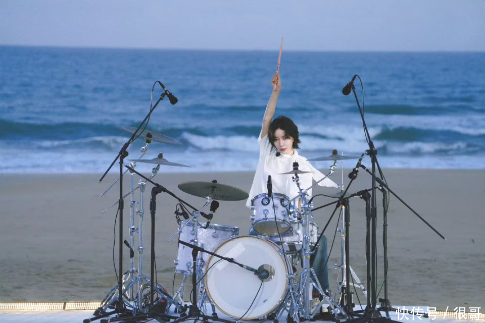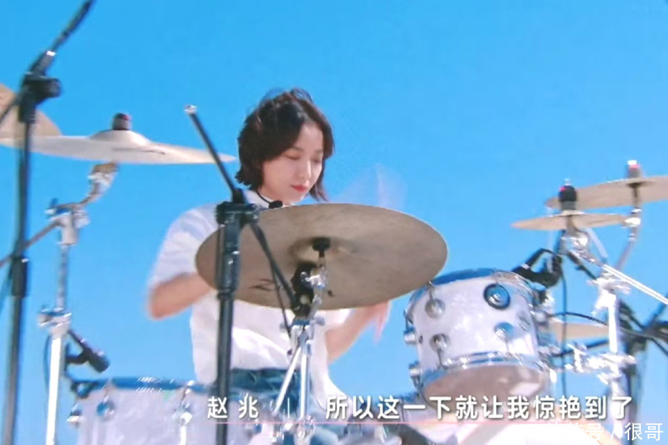 前半段她自弹吉他演绎民谣风格,展现出了温柔细腻的一面;后半段切换至架子鼓演奏摇滚段落,瞬间点燃了全场的气氛,实现了“两级反转”的舞台设计。